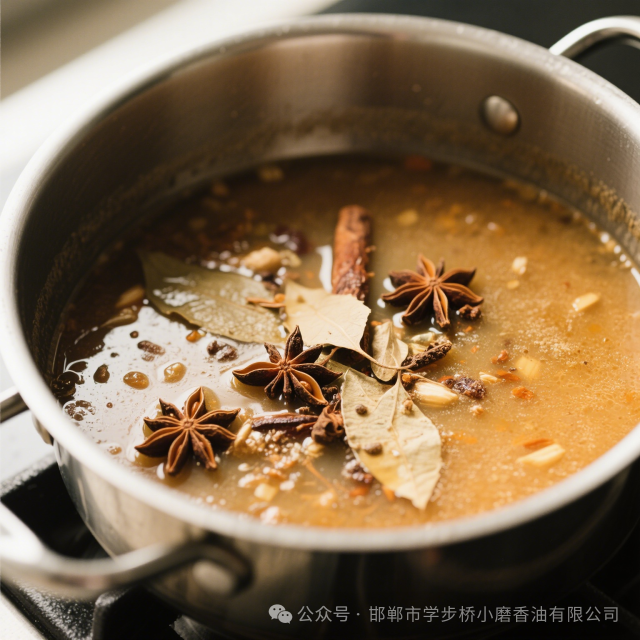 1. 鍋中倒入適量油,油熱后放入大蔥片、姜片、蒜瓣、花椒、桂皮和八角,小火煸炒出香味。