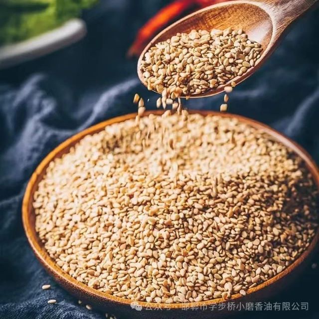 學(xué)步橋小磨香油選用的白芝麻多來自湖北、河南,少量來自河北大名。湖北素有“魚米之鄉(xiāng)”的美譽(yù),這里氣候溫潤,陽光充足,土壤肥沃,為白芝麻的生長提供了得天獨(dú)厚的自然條件。在這片土地上孕育出的白芝麻,顆粒飽滿,色澤潔白,富含油脂。輕輕咬開一顆,芝麻特有的香氣瞬間在口中散開,醇厚悠長。河南的氣候和土壤等自然條件也非常適宜芝麻生長,種植歷史悠久、種植技術(shù)成熟,芝麻種植和產(chǎn)量位居全國前列,為香油的規(guī)?;a(chǎn)奠定了良好基礎(chǔ)。