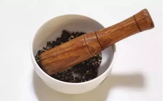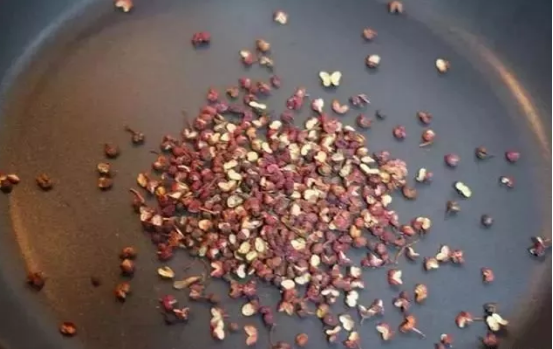 4、把炒熟的花椒壓碎。