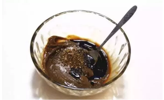 5、在大碗里倒入芝麻醬,再加入鹽、碎花椒、老抽一起攪拌均勻,調(diào)和成麻醬。