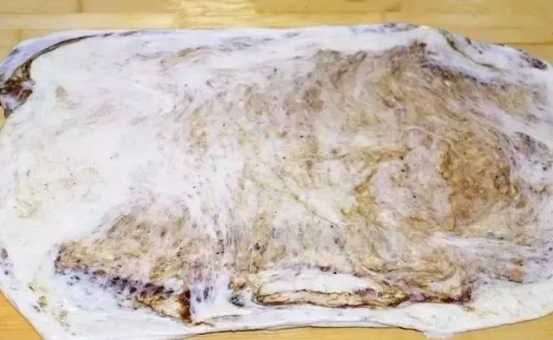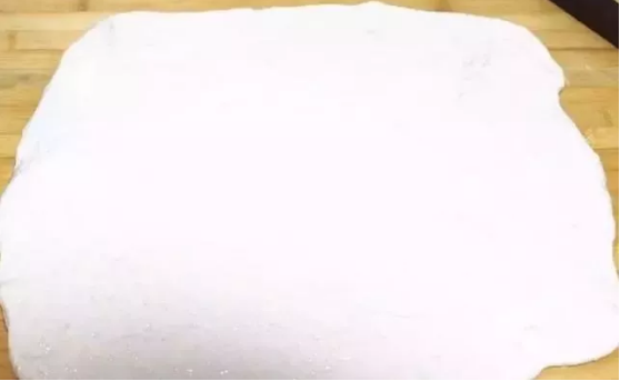 12、然后把面團(tuán)再次搟開(kāi)。