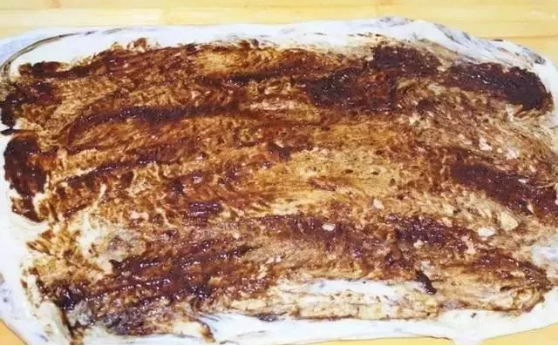 13、再把剩下的麻醬都用筷子抹在面餅上。