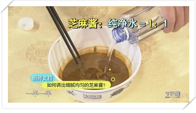 要想調制的芝麻醬細膩均勻不出現疙瘩,第一步就是要對芝麻醬進行稀釋。