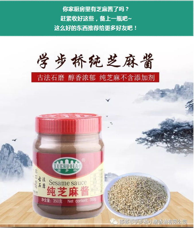 吃整個(gè)的芝麻,營養(yǎng)全在里面,而把芝麻制成醬,營養(yǎng)全部釋放出來了。不僅豐富了膳食的風(fēng)味,還提高了飲食的營養(yǎng)價(jià)值,尤其適合中老年人。
