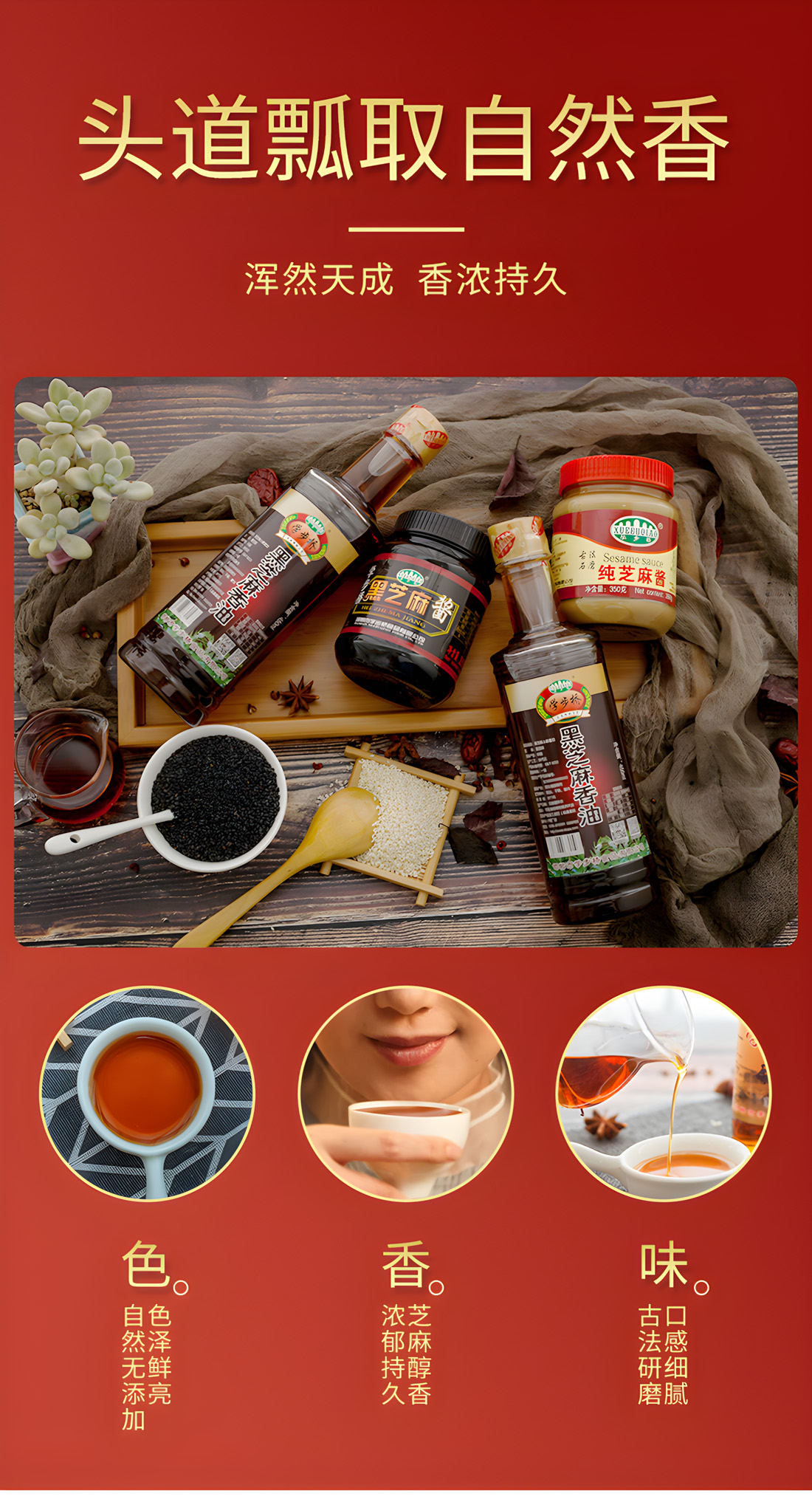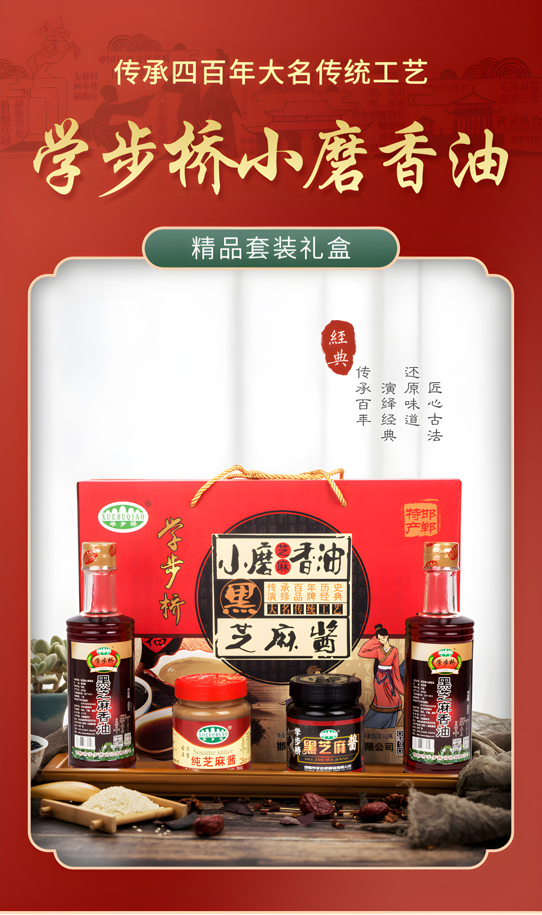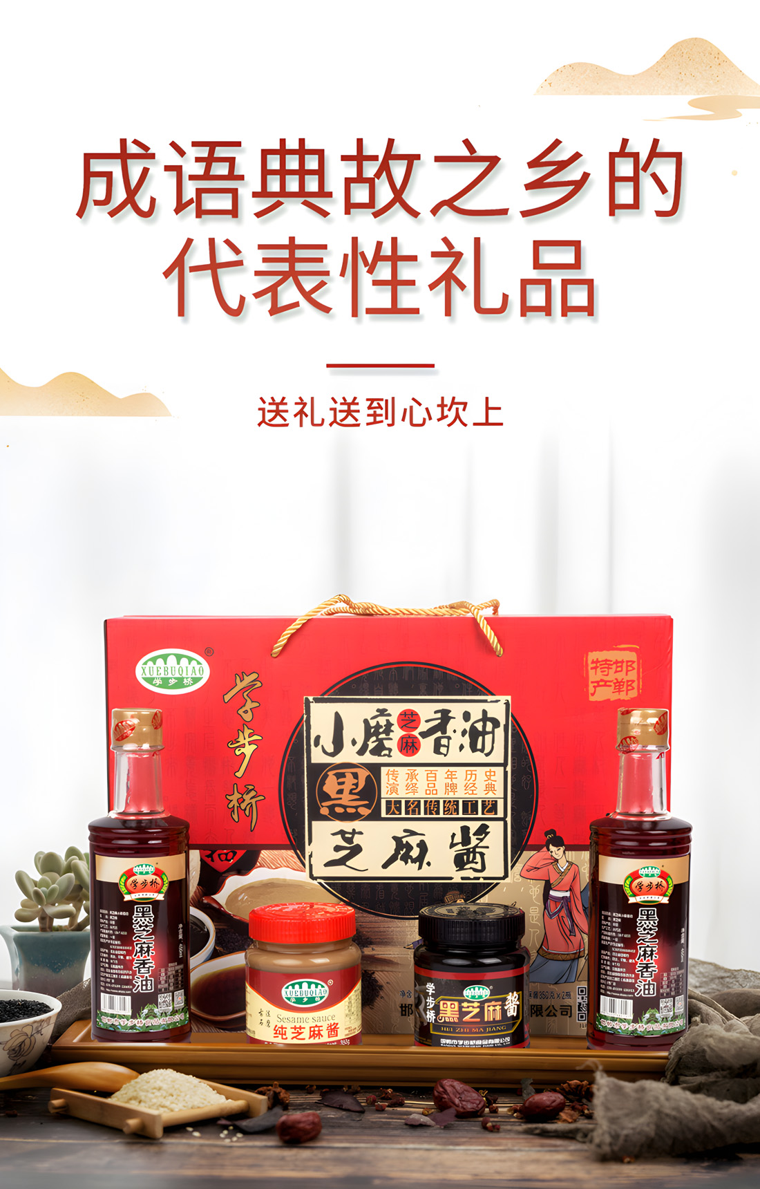 內(nèi)含360克黑白芝麻醬各一瓶,450ml黑芝麻香油2瓶,此禮盒為香油芝麻醬組合套裝,內(nèi)容豐富。禮盒尺寸較大,外觀更大氣,是拜訪領(lǐng)導(dǎo)、老師、長輩彰顯尊貴的伴手禮。