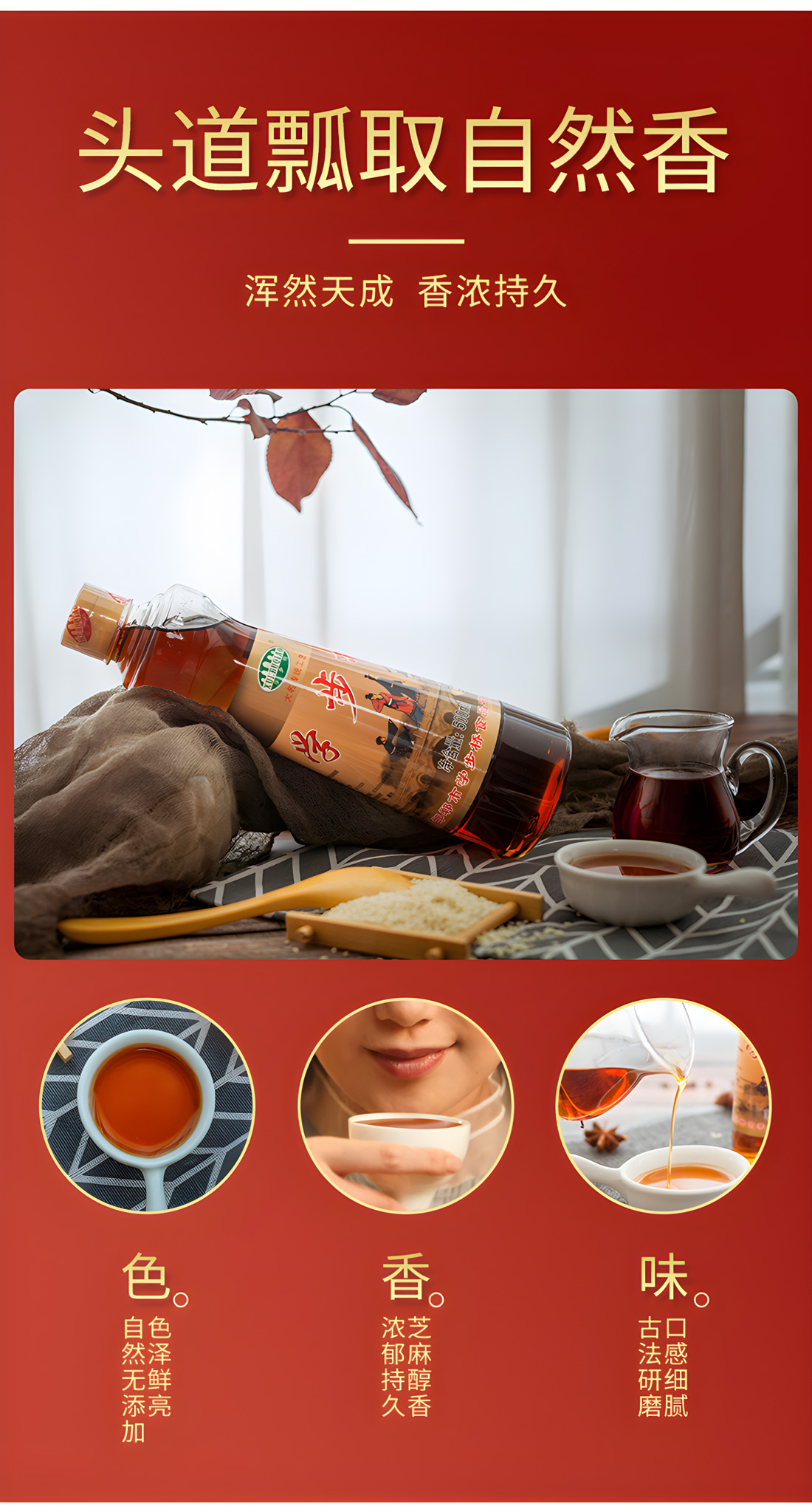 實(shí)惠大瓶裝,家庭自用更合適,涼拌、調(diào)餡、炒菜,出鍋之前加香油,只需一滴,輕松烹飪美味佳肴!