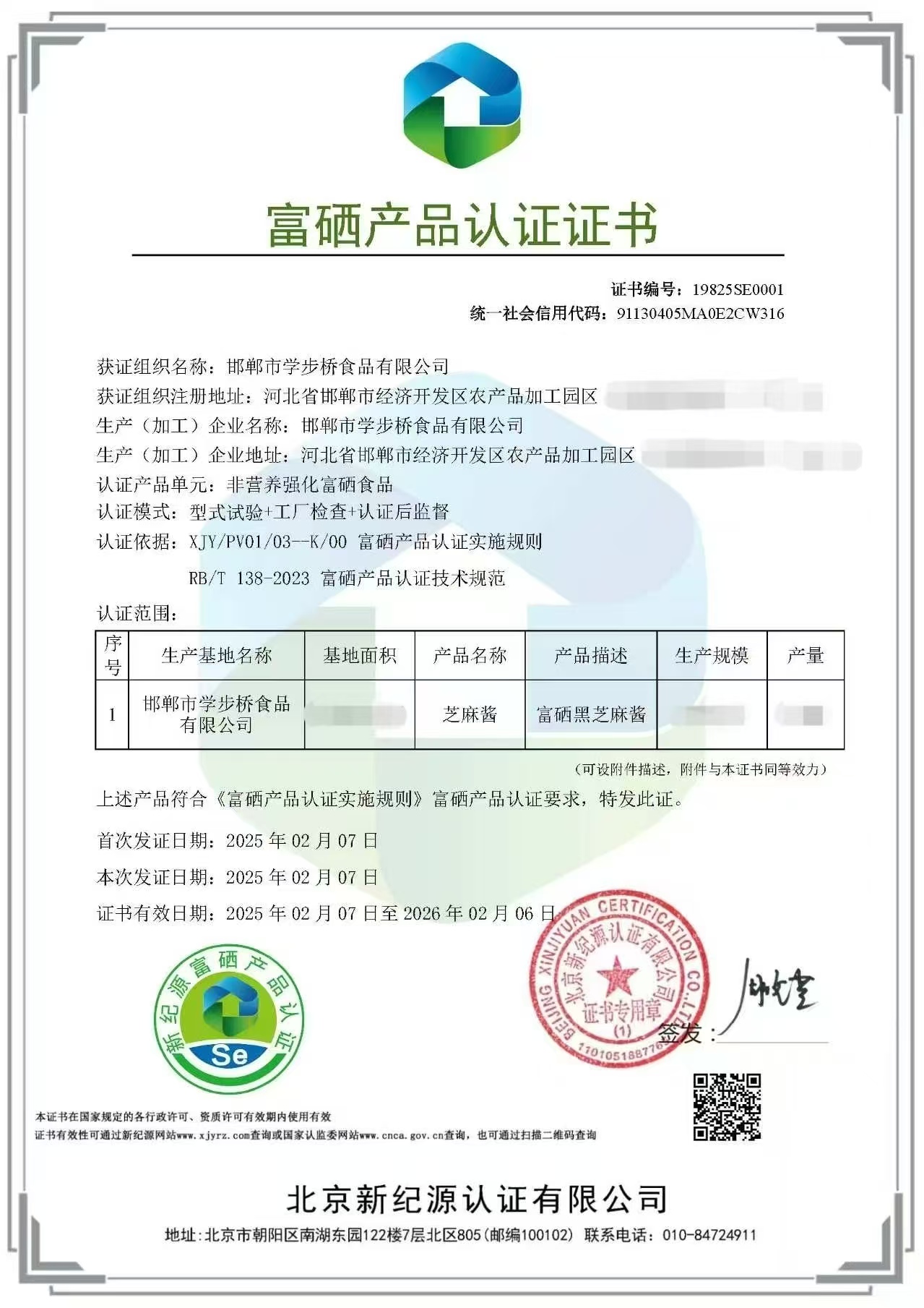 邯鄲市學步橋食品有限公司獲有機、富硒產品權威認證