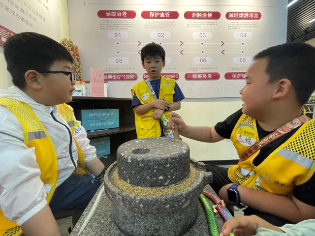 一進(jìn)入文化館,孩子們就被館內(nèi)文化墻上的圖文吸引住了。工作人員在講解中,從芝麻種植到石磨演變的圖文,為孩子們串聯(lián)起大名香油自明嘉靖年間發(fā)源的歷史脈絡(luò),通過介紹來自世界各地的芝麻樣本和歷史古籍記載,讓孩子們對小磨香油的發(fā)展歷程有了初步的認(rèn)識。