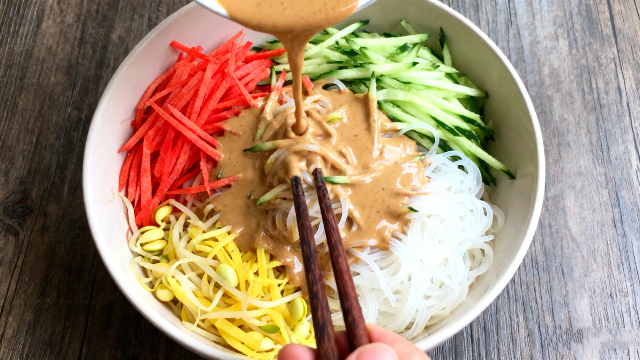 2. 淋上調(diào)好的麻醬汁