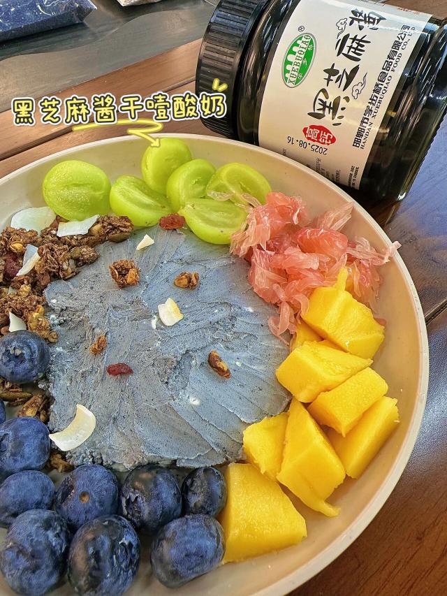 如果說普通酸奶是清爽,那這道“干噎酸奶” 就是把幸福感拉滿的綿密炸彈!黑芝麻醬的堅(jiān)果香和濃稠酸奶碰撞,挖一勺像在吃冰淇淋,還能嚼到脆生生的堅(jiān)果碎,解膩又頂飽,當(dāng)早餐或下午茶都超合適~