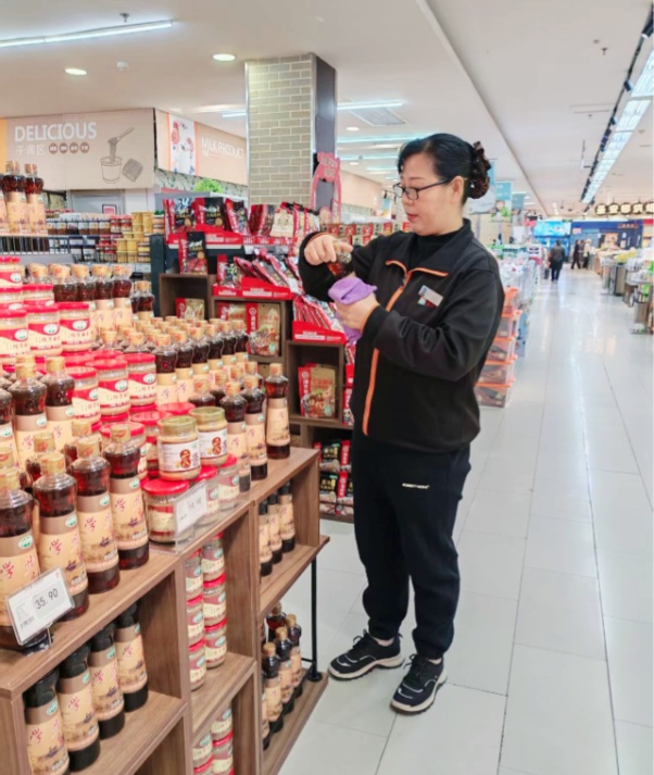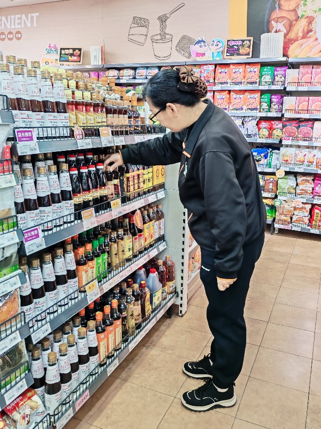 前幾日,超市禮盒區(qū)剛完成上新,學(xué)步橋小磨香油促銷(xiāo)員馬麗紅像往常一樣守在自己的堆頭前。她始終保持著對(duì)周?chē)拿翡J觀察,不被動(dòng)等待顧客詢(xún)問(wèn),而是主動(dòng)捕捉每一個(gè)潛在需求信號(hào),這正是她踐行“有意注意”的日常。這時(shí),兩位男士推著購(gòu)物車(chē)朝禮盒堆走來(lái),購(gòu)物車(chē)?yán)锏奈灏倬酉隳c禮盒立刻引起了她的注意。