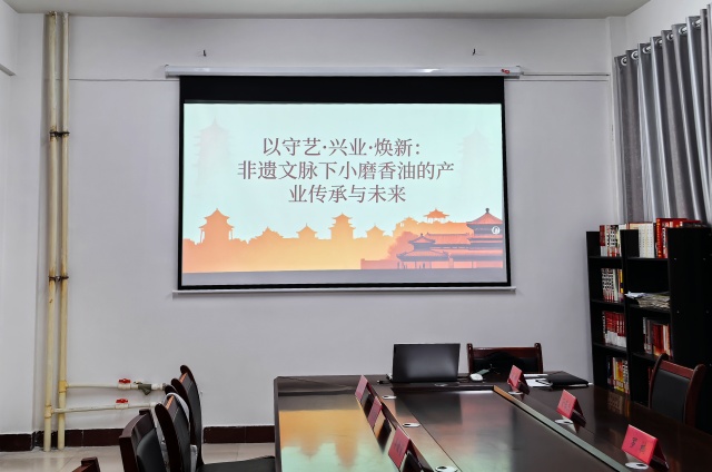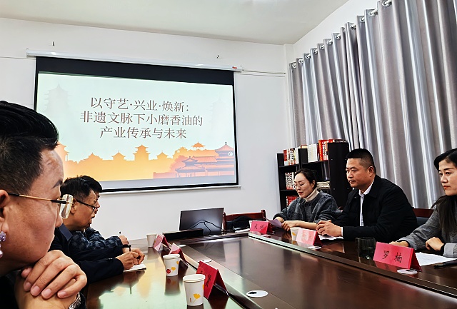 會議現(xiàn)場,醒目的引導(dǎo)牌印著“古法石磨,香油留香”的非遺標(biāo)識,投影幕布上“以守藝·興業(yè)·煥新:非遺文脈下小磨香油的產(chǎn)業(yè)傳承與未來”的主題,點明了本次研討的核心方向。與會嘉賓圍坐交流,既有主管部門的政策視角,也有企業(yè)的實踐經(jīng)驗,氣氛熱烈務(wù)實。