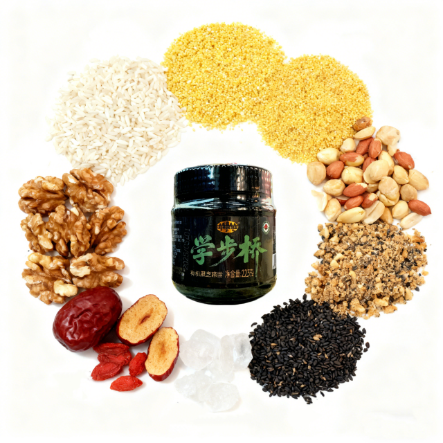 ?核心食材:學(xué)步橋黑芝麻醬2-3勺(約30g,粥的“靈魂”)、混合堅(jiān)果 50g(核桃、花生、杏仁等,提前碾碎)