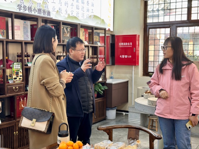 隨后,他引領(lǐng)嘉賓們參觀了學(xué)步橋香油文化館,結(jié)合石磨器具、歷史展板等陳列,分享了品牌傳承與產(chǎn)業(yè)發(fā)展歷程,并重點(diǎn)闡述了公司在經(jīng)濟(jì)互助活動(dòng)中的核心舉措——依托自身渠道與品牌優(yōu)勢,為合作商家提供資源對接、技術(shù)支持等服務(wù),推動(dòng)產(chǎn)業(yè)鏈上下游協(xié)同發(fā)展。期間,身著傳統(tǒng)服飾的工作人員演示了小磨香油古法制作工藝,讓協(xié)會(huì)同仁在感受非遺文化魅力的同時(shí),進(jìn)一步了解了公司的產(chǎn)業(yè)實(shí)力與發(fā)展?jié)摿Α?