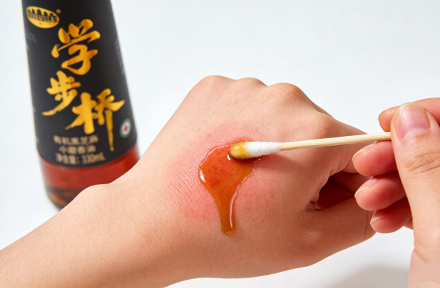 【原料準(zhǔn)備】學(xué)步橋有機(jī)黑芝麻小磨香油適量、消毒棉簽1根