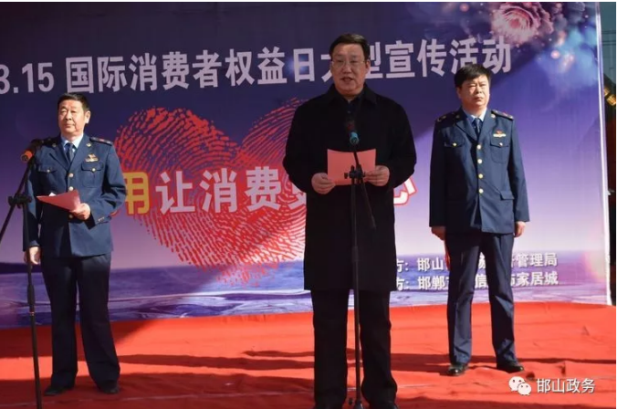 為提升廣大人民群眾的依法維權(quán)意識、經(jīng)營者社會責任意識和質(zhì)量意識,3月15日,邯山區(qū)在啟信燈飾廣場,圍繞“信用讓消費更放心”這一主題,開展了形式多樣、內(nèi)容豐富的“3.15”國際消費者權(quán)益保護日宣傳活動。副區(qū)長王建國出席活動并致辭,區(qū)市場監(jiān)管局、區(qū)人民檢察院、各鄉(xiāng)鎮(zhèn)社區(qū)食品監(jiān)管員、學步橋香油等企業(yè)共計200余人參加活動。